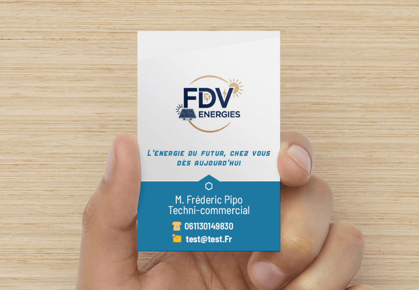 Nous sommes ravis de vous présenter la manière dont votre nouveau logo FDV Energies prendra vie sur les supports essentiels de votre entreprise, renforçant ainsi votre présence et votre professionnalisme sur le terrain.
